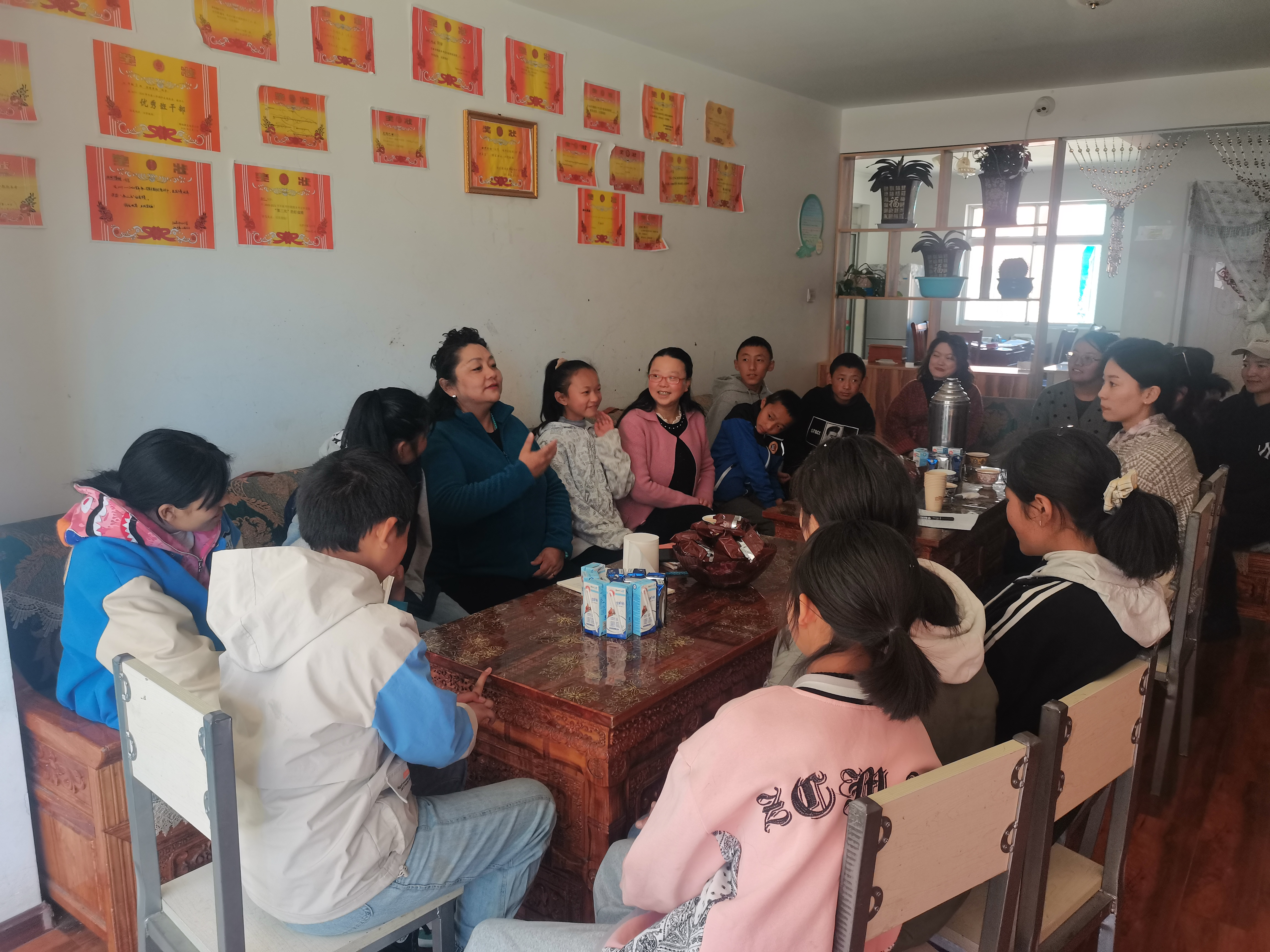 大家分组进入3个爱心家庭,与爱心妈妈、孩子们零距离交流。通过声情并茂讲述《一封鸡毛信》《闪闪红星》《草原英雄小姐妹》等党史小故事,教育引导孩子们传承爱国爱党、知恩感恩红色基因。通过座谈交流,孩子们敞开心扉,畅谈人生理想和学习上的疑惑。大家一一为孩子们答疑解惑,鼓励孩子们增强自信、强健体魄、加强学习,做使用和推广国家通用语言文字的“小使者”。爱心家庭不时传来阵阵笑声,孩子们用稚嫩却笃定的声音表示,将努力学习,以“吃水不忘挖井人”的感恩之心,铭记党恩、回报社会。在与爱心妈妈们交流中,感谢她们为西藏儿童福利事业做出的贡献,了解她们工作生活上的困难,帮助她们解决实际问题。座谈结束后,大家还来到室外,开展文体活动。