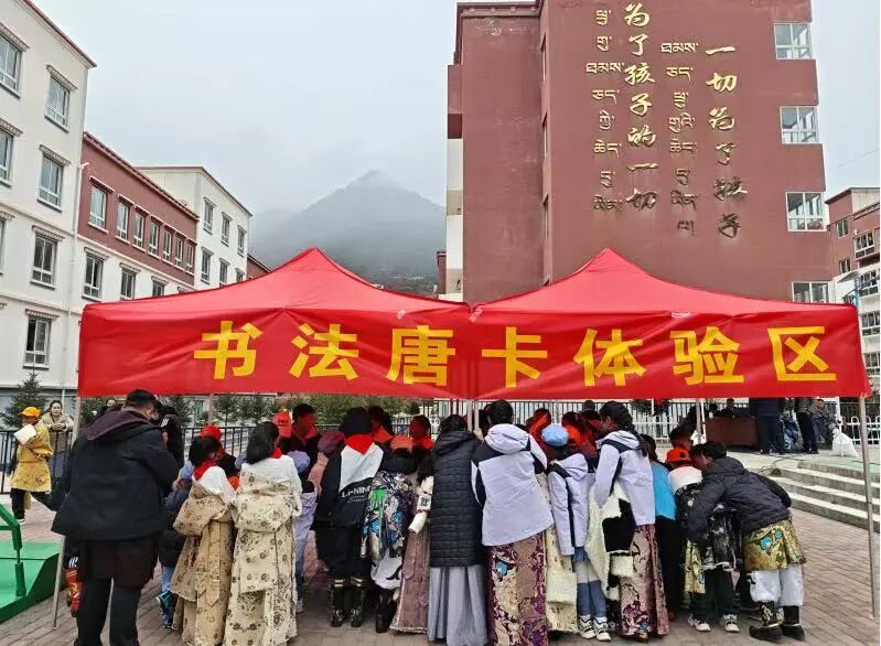 书法唐卡体验区里,孩子们在党员干部的耐心指导下,一笔一画临摹练习,近距离感受中华优秀传统艺术的独特魅力,在笔墨丹青中传承文化根脉、汲取精神力量。