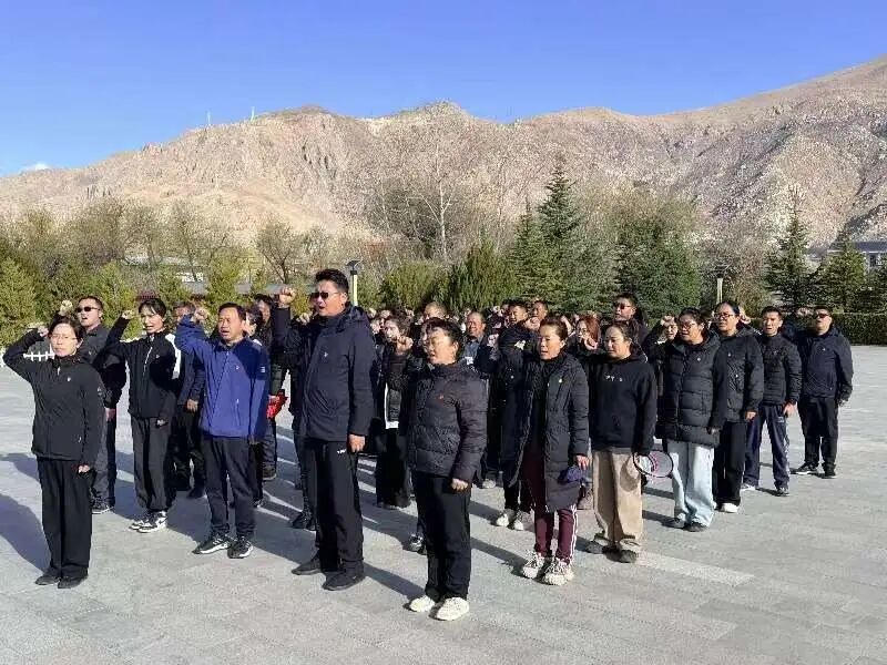 瞻仰烈士丰碑,传承红色精神。在烈士纪念碑前,全体人员整齐列队,齐声高唱《中华人民共和国国歌》,向为西藏和平解放、社会主义建设和改革开放事业英勇献身的革命烈士默哀,向革命烈士依次上前敬献鲜花,表达对英烈的深切哀思与崇高敬意。