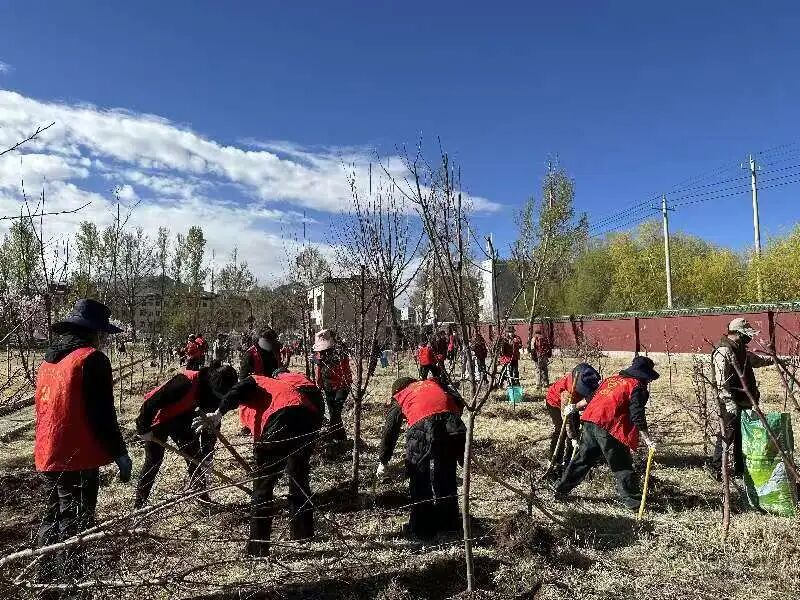 开展义务植树,厚植生态底色。在拉萨公墓园,义务植树现场一片热火朝天的劳动景象,大家分工明确、配合默契,有的挥动铁锹铲土,有的扶正幼苗并填埋坑穴,有的提着水桶浇水,每个环节均执行得认真而细致,共补栽苹果树和山杏树128棵,以实际行动践行“绿水青山就是金山银山”理念,助力生态文明与移风易俗。