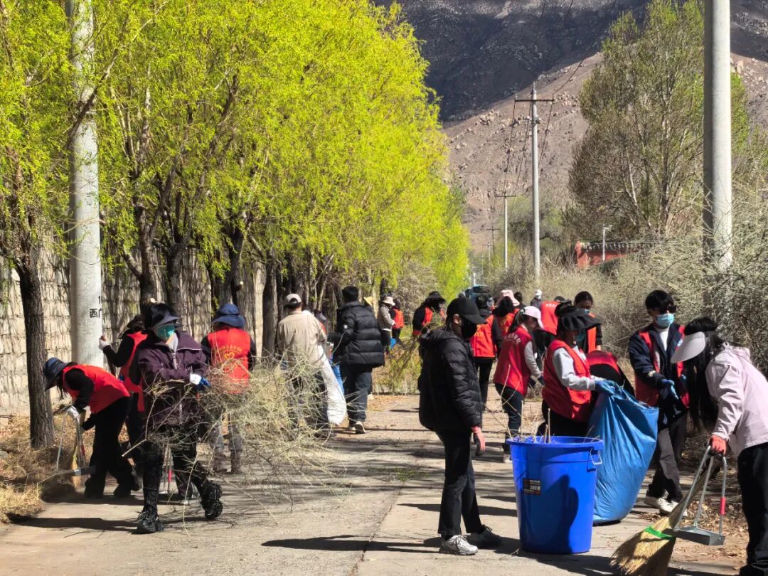拉萨市美丽公约格桑花生态保护中心50余名志愿者也参加了清扫活动。