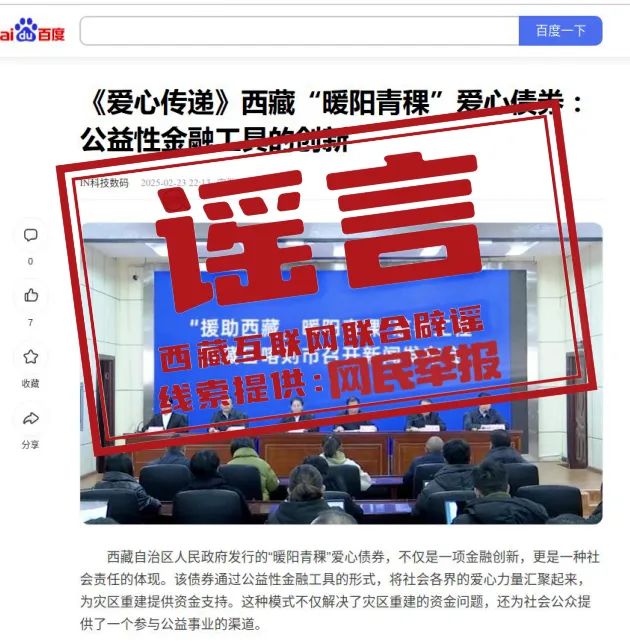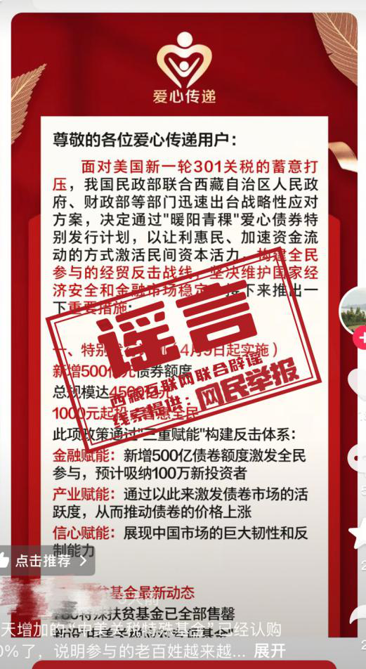 网传“‘爱心传递’APP发行‘暖阳青稞’爱心债券”?假的!